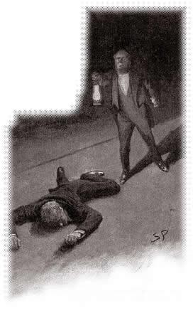 “在查尔兹爵士暴死的当晚,总管白瑞摩发现以后,立刻就派了马夫波金斯骑着马来找我,因为我就寝很晚,所以在出事后一小时之内我就来到了巴斯克维尔庄园。我验证了所有在验尸过程中提到过的事实。我顺着水松夹道往前观察了他的脚印,看过了对着沼地的那扇栅门的地方,看来他曾在那儿等过人,我注意到由那一点以下的足迹形状的变化。我还发现了,除了白瑞摩在软土地上留下的那些足迹之外没有其他足迹。最后我又细心地检查了尸体,在我到达以前还没有人动过它。查尔兹爵士趴在地上,两臂伸出,他的手指插在泥土里;他的面部肌肉因强烈的情感而紧缩起来,甚至使我无法辨认,确实没有任何伤痕。可是在验尸的时候白瑞摩曾提供了一个不真实的证明。他说在尸体周围的地上没有任何痕迹,他什么也没有看到。可是,我倒看到了——就在相距不远的地方,不仅清晰而且是痕迹犹新。”